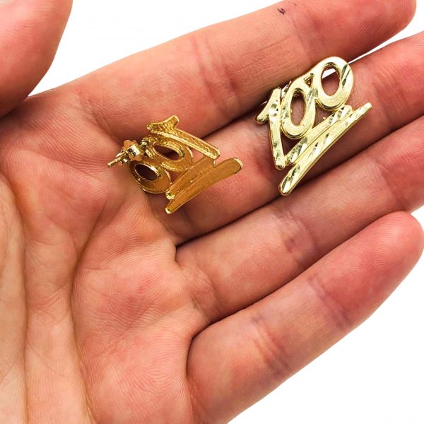 10 KT yellow gold 100 emoji Stud Earrings with premium brush background and diamond cutting throughout.
