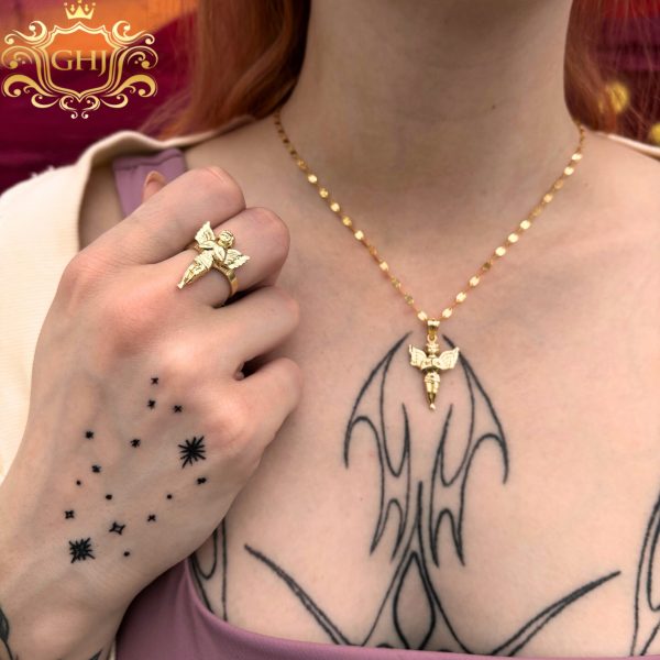 Angel Style Ring Diamond Cut Wings or Extra Shine!