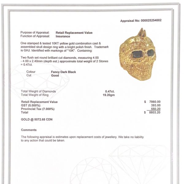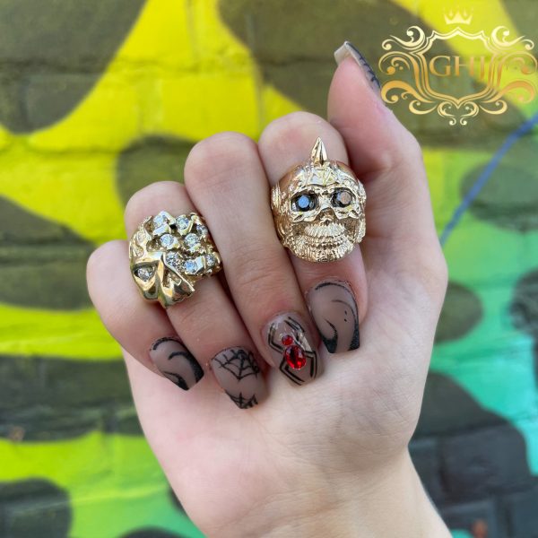 Black Diamond Eyes Set In Detailed Skull Ring Custom Made In Shop!