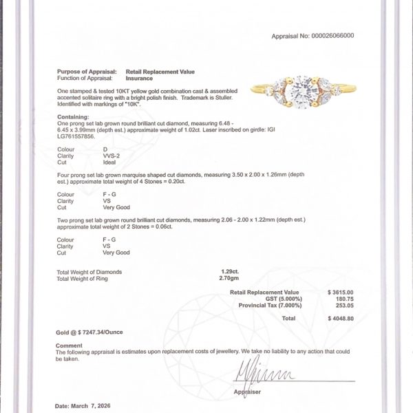 Brilliant Cut 1.29ct Lab #65 – Diamond Ring