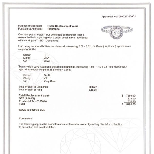 Brilliant Cut Diamond ring with Halo