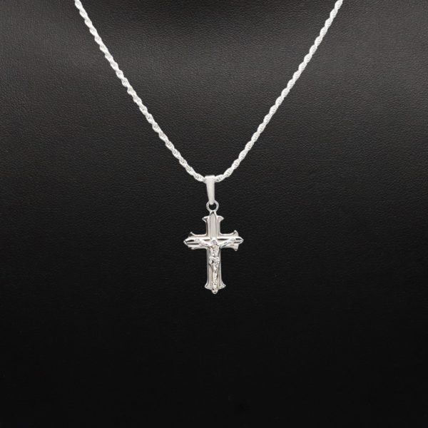 Small Silver Cross Pointed Corners Style Pendant High Polish Finish