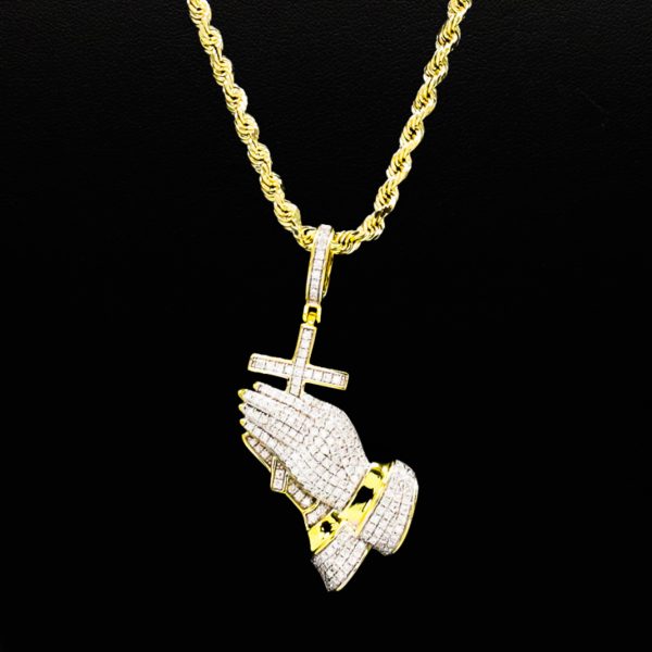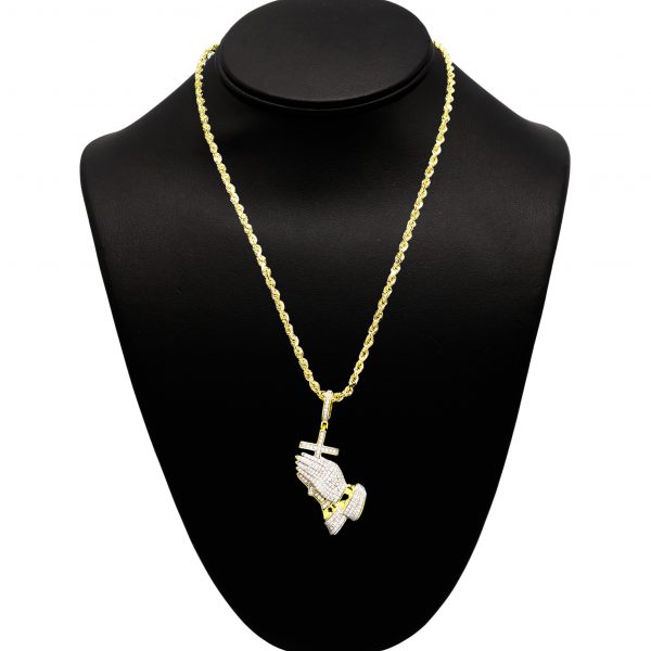 Cross Prayer Hands Moissanite Yellow Silver – Silver Pendant