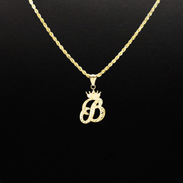 Crown Diamond Cut Letter B- Pendant