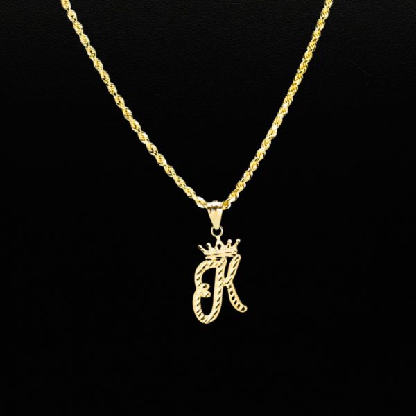 Be the first to review “Crown Diamond Cut Letter K- Pendant”