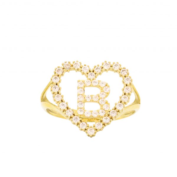 Cubic Zirconia Heart Letter B Ring!