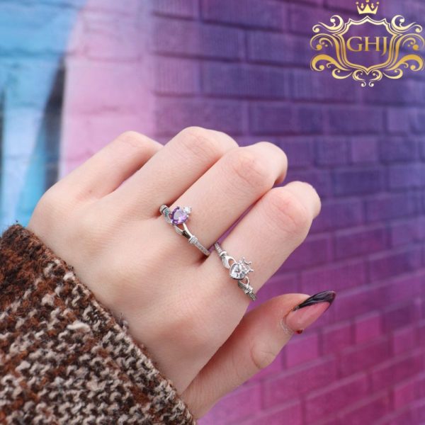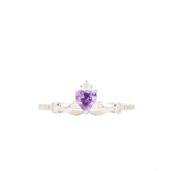 Cubic Zirconia Purple Heart Claddagh Ring !