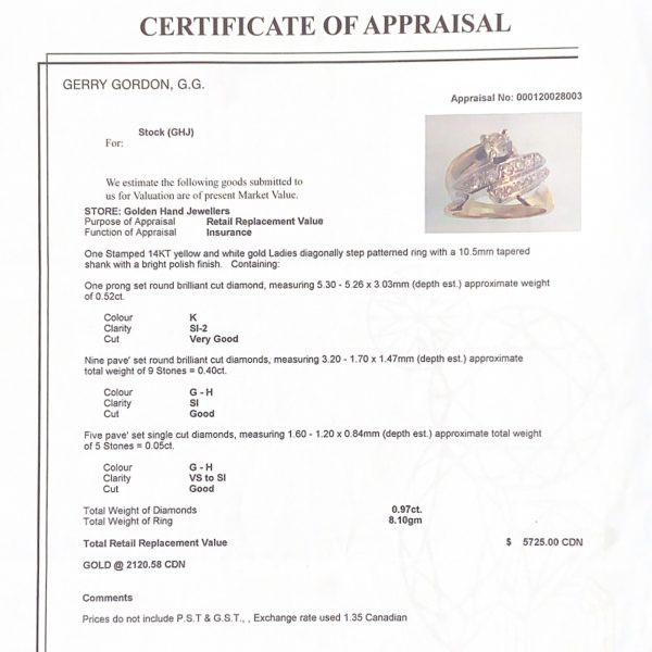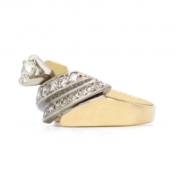 Diagonal style diamond ring 14k two tone