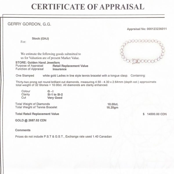 +Appraisal included #164 BRACELET IS APPRAISED FOR $14,500