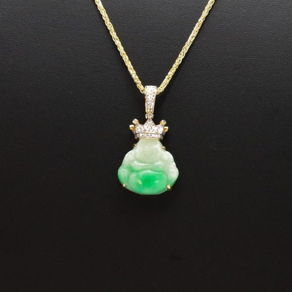 Diamond Crown green and white mixed buddha pendant