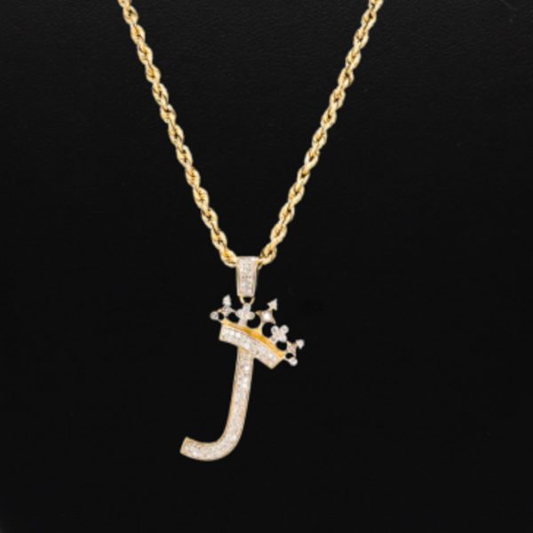 Diamond Crown Letter J .30ct 10k- Diamond Pendant