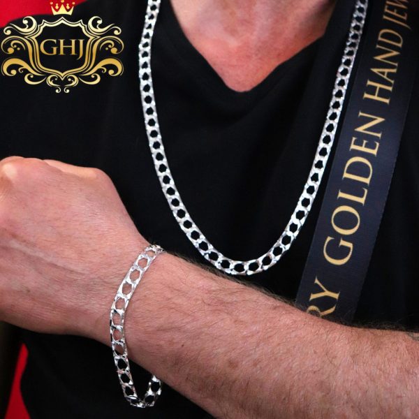 Diamond Cut 8.4mm 9″ GHJ119 – Silver Bracelet
