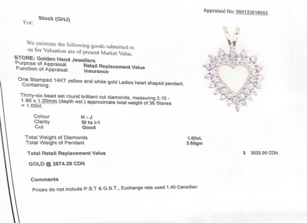 Stunning yellow gold 14KT diamond heart pendant