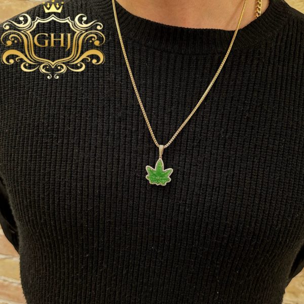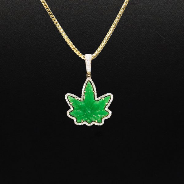 Diamond Green Jade Leaf pendant
