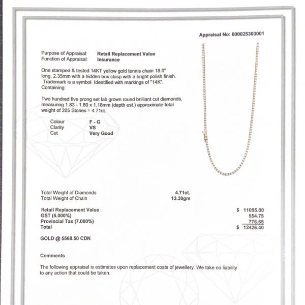 Diamond Tennis Chain 4.7ct Lab 18″ #242 – Chains