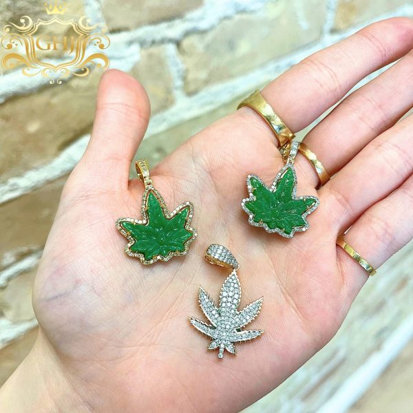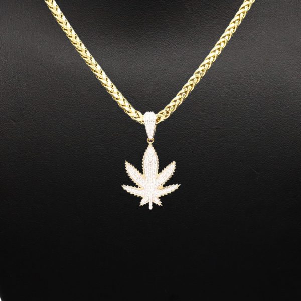 Diamond Weed Leaf Pendant With Caged Backplate