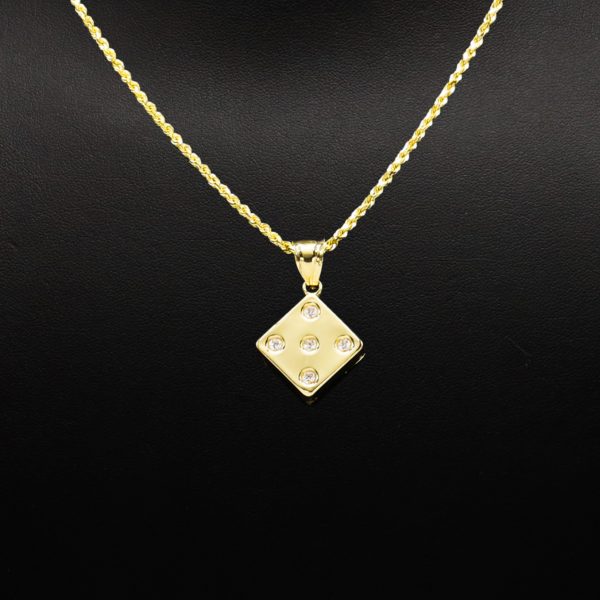 Double Sided Dice Pendant With Cubic Zirconia Stones 5 Set on one side and 6 on the Other Side!