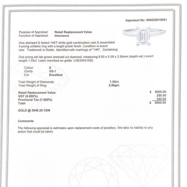 Emerald Cut 1.55ct Lab #148- Diamond Ring