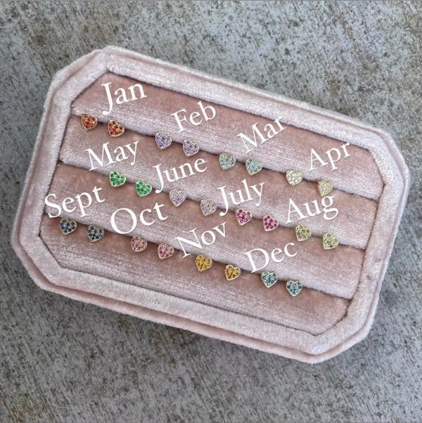 *NEW* Cubic Zirconia Birthstone Heart Studs