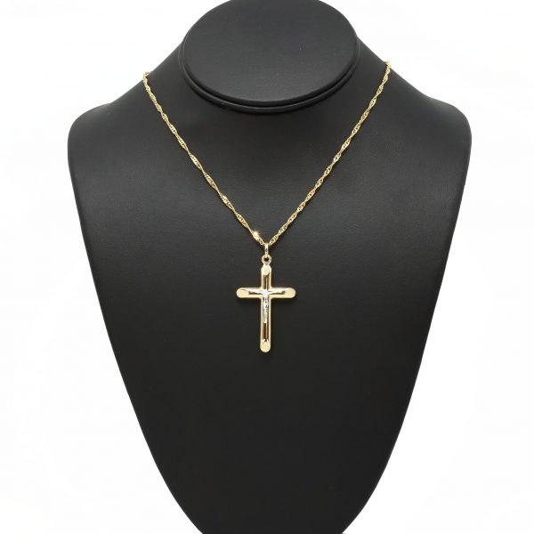 Hollow Flat corner cross with white gold Jesus high polish finish