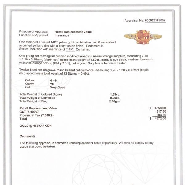 Genuine Orange Sapphire .09ct Lab #16 – Ring