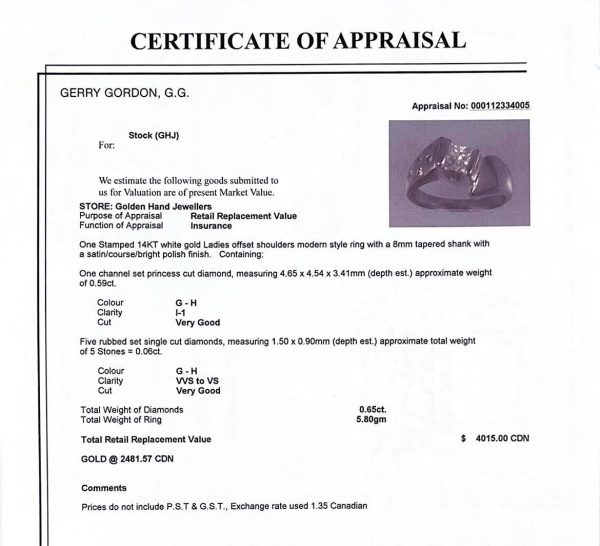 Diamond total weight: 0 .65ct