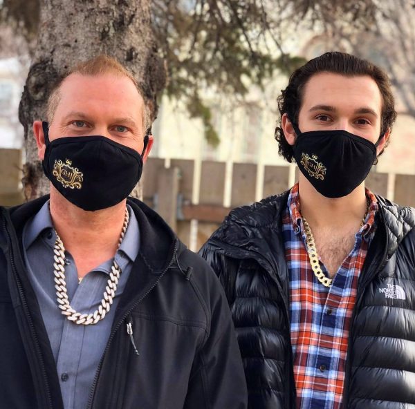 Our Golden Hand Jewellery logo imprinted onto black cotton masks.