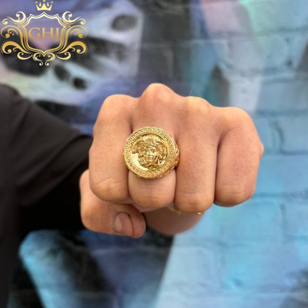 Stunning Round Medusa face with nugget-style detail on the sides – one of a kind Medusa ring!