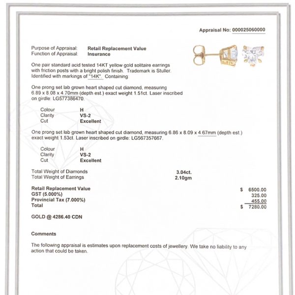 Heart 3.0ct Lab 14k #33-Diamond Earrings