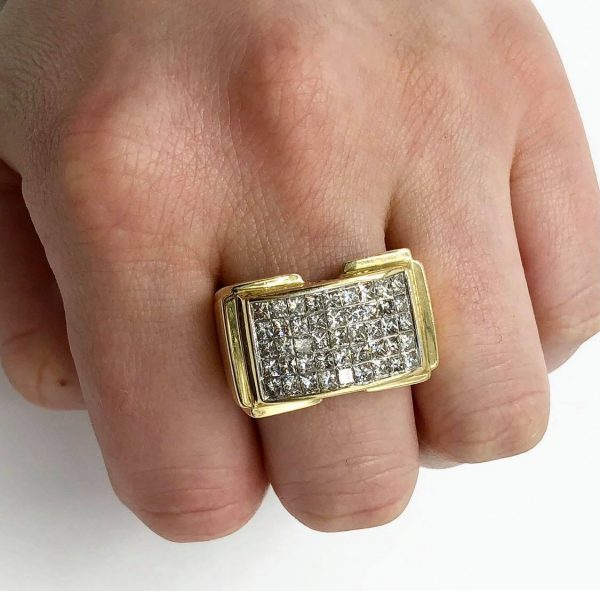 10 KT yellow gold Princess cut genuine diamond ring, Premium illusion set with 45 diamonds.