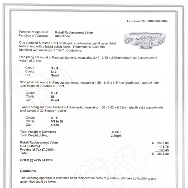+Appraisal included Appraised at: $2,615.20