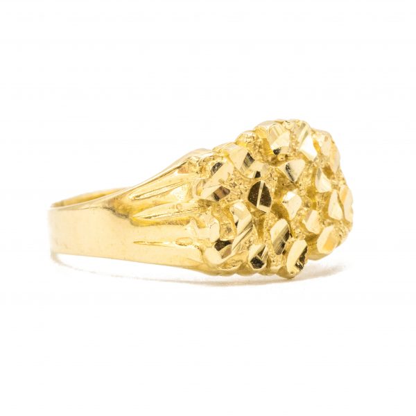 10KT hollow back yellow gold nugget ring. The Joe has defined diamond cut nuggets on the top and a smooth high polish band.