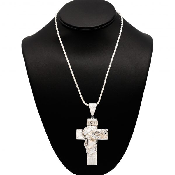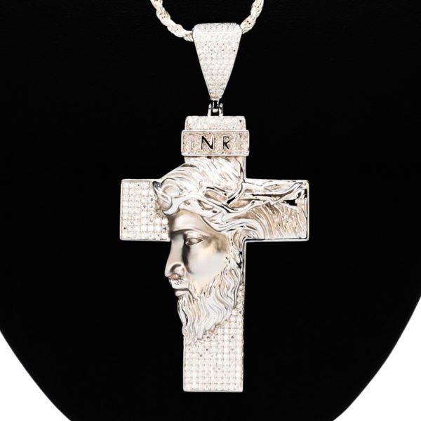 Large Jesus Cross Moissanite – Silver Pendant