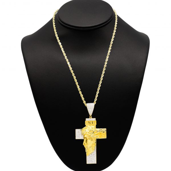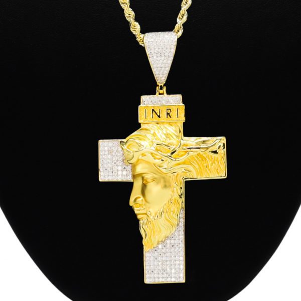 Large Jesus Cross Moissanite Yellow Silver – Silver Pendant