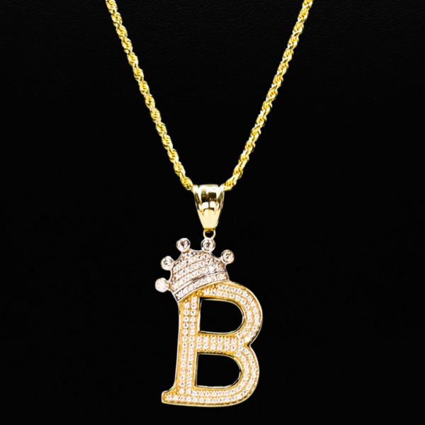 Large Two Tone CZ Crown Letter B – Pendant