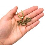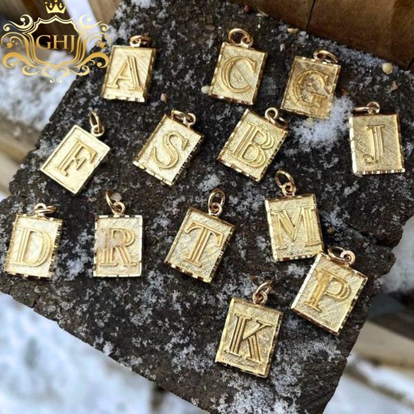 Yellow gold square letter A pendant.