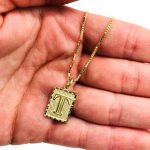 Yellow gold square letter D pendant.