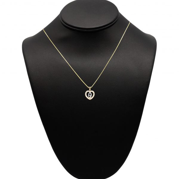 Letter O Heart Pendant With Cubic Zirconia Stones