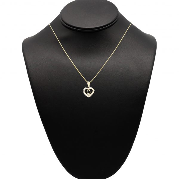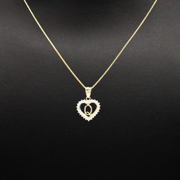 Letter Q Heart Pendant With Cubic Zirconia Stones