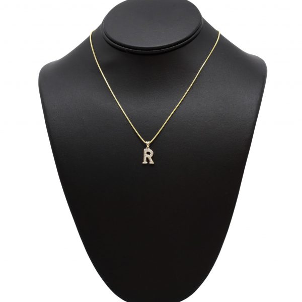 Letter R .11ct 10k- Diamond Pendant