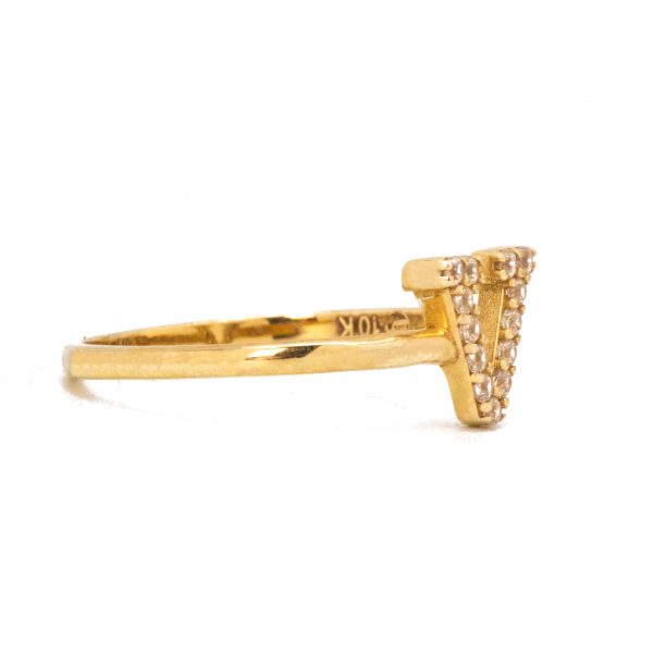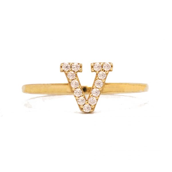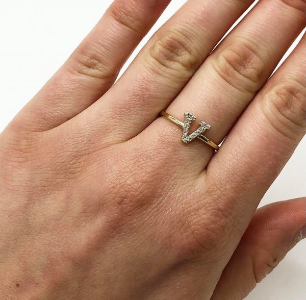 Letter V ring with 13 stones set in.