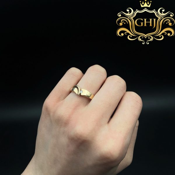 14KT Mens diamond band high polish finish with a solitaire bezel setting