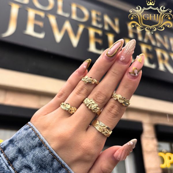 Small Chunky diamond cut Nuggets on thick solid band. Nice and simple Nugget ring.