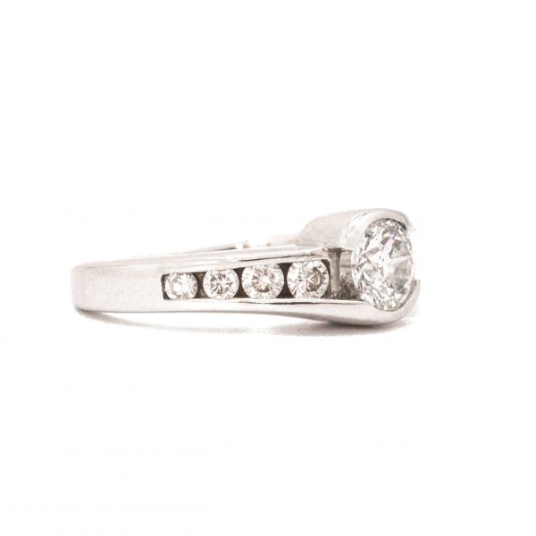 Get A Stunning Brilliant Cut Solitaire Engagement Ring With Channel Set Diamonds On Each End Of Band!
