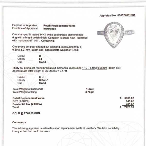 Pear 1.4ct #114 – Diamond Ring