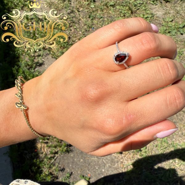 Pear Garnet 14k – Diamond Ring