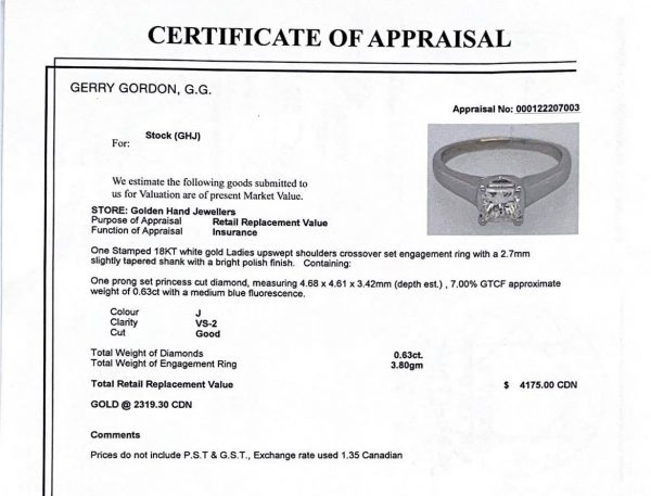 Diamond Clarity and Colour: VS-2 clarity, J colour