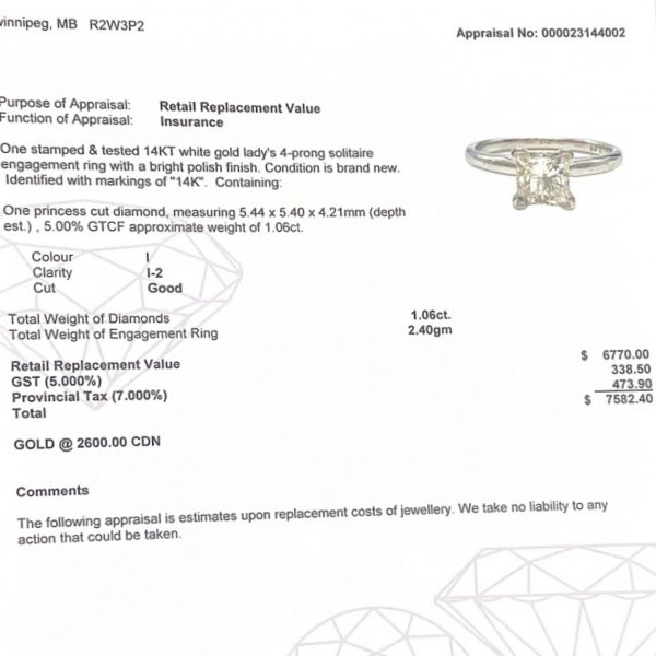 Princess Cut Solitaire Diamond Ring 14k white Gold Band