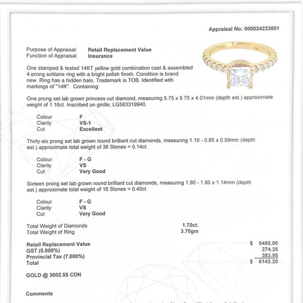 Princess Cut 1.7ct Lab #265 – Diamond Ring