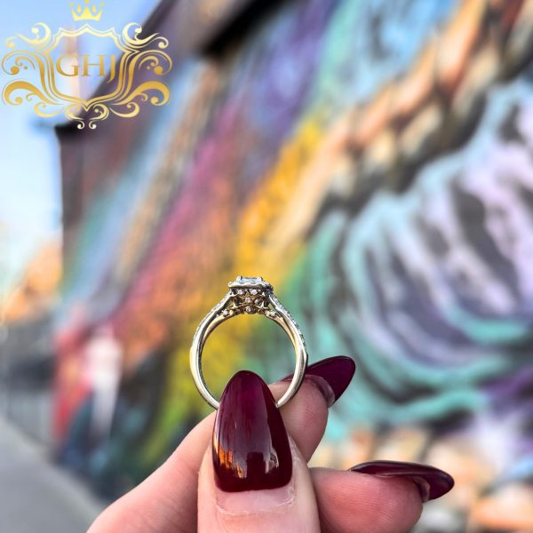 .75ct Princess Cut Halo Diamond Ring With Star Detail Under Gallery Rail!